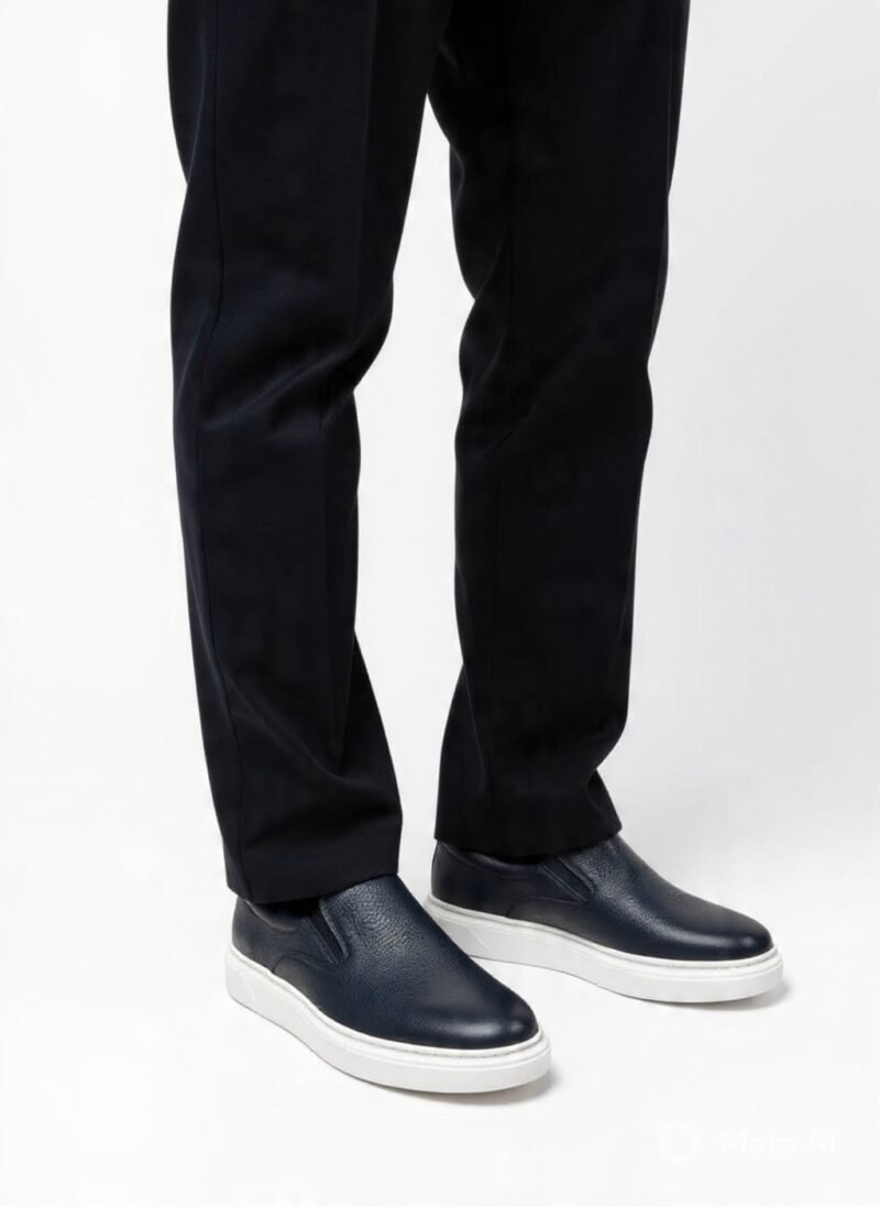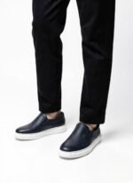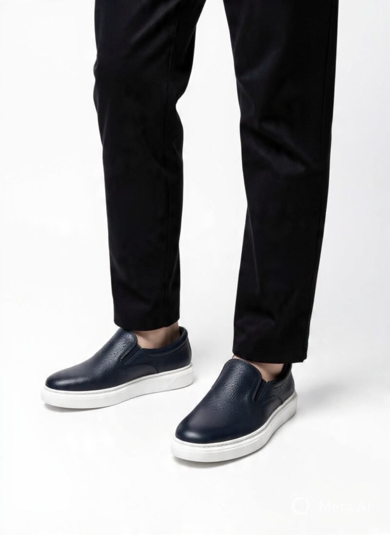 Slip-on en cuir lisse bleu marine profond, au design minimaliste et épuré pour un enfilage effortless. La semelle plateforme blanche surélevée apporte une touche athlétique et visuellement dynamique, tout en assurant amorti et soutien optimal. Parfait pour les tenues casual chic ou urbaines, cette paire incarne le luxe accessible de Basstoni avec son cuir premium italien