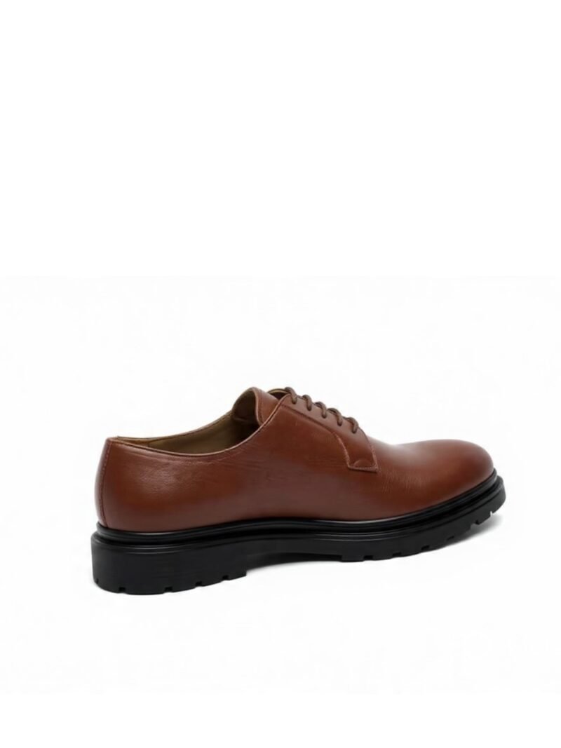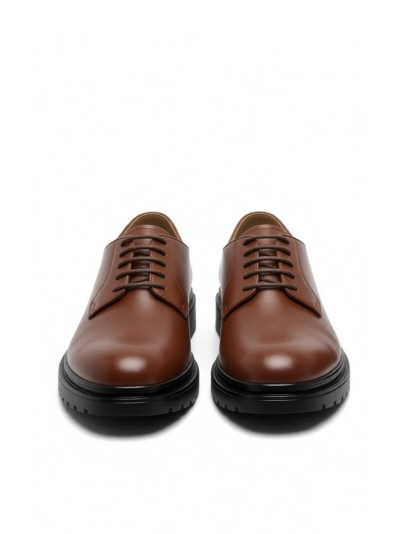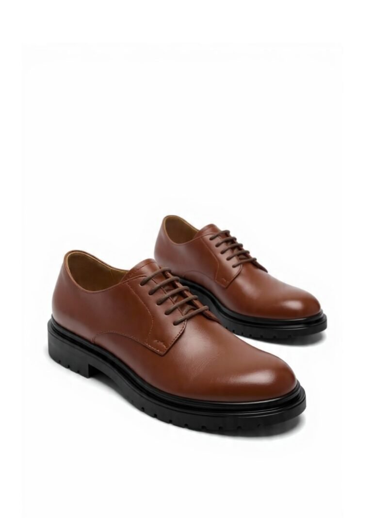 La couleur chaude du cuir apporte une touche de raffinement et de caractère, facile à associer, tandis que la silhouette épurée du Derby assure une élégance naturelle. Le véritable atout de cette chaussure réside dans son contraste saisissant : la semelle épaisse, inspirée du style urbain, non seulement dynamise le look, mais garantit également un confort sans faille et une adhérence parfaite.